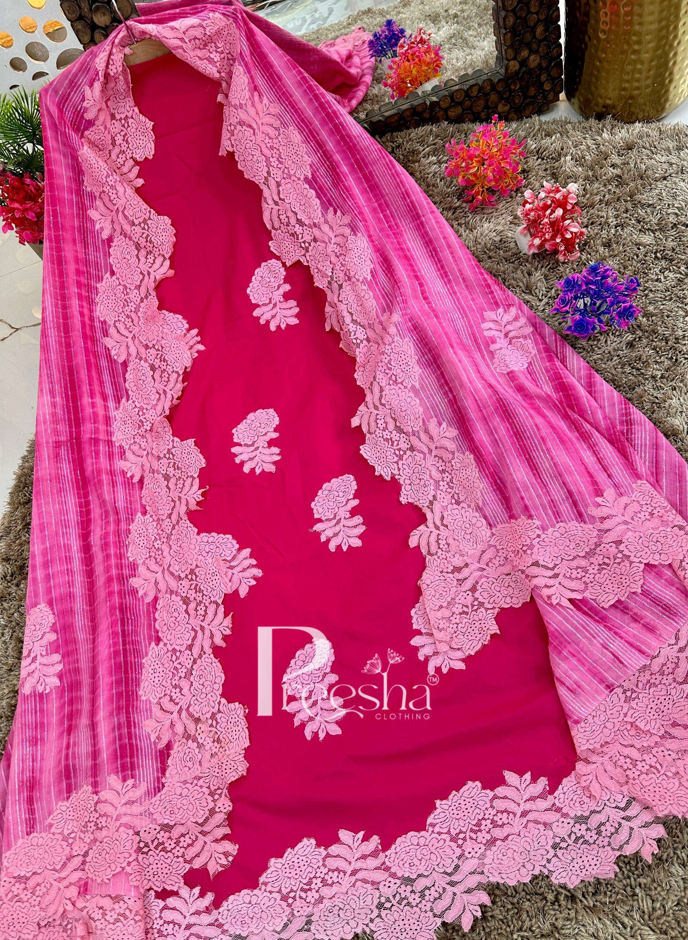 Tie and dye pure cotton lurix dupatta adds a pop of color and texture, completing the look.