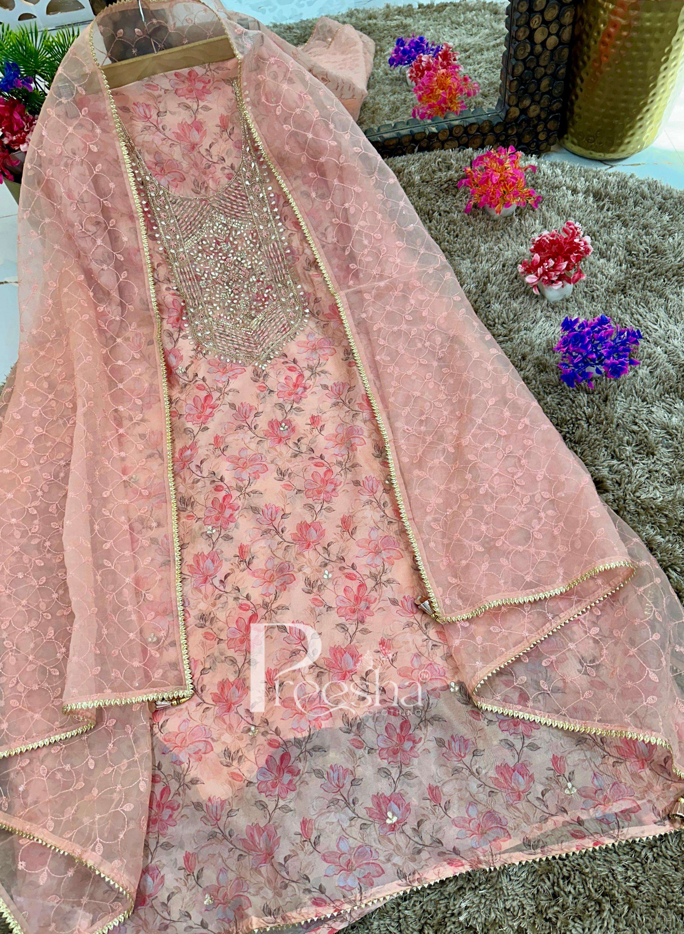 "Exquisite Pakistani Suit: Hand Embroidered on Organza Fabric