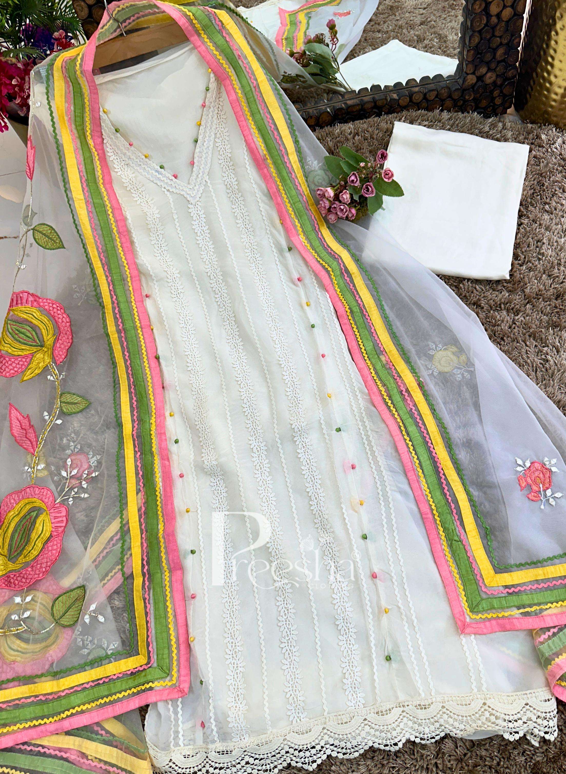 Elevate your style with this stunning pure organza Pakistani suit set,